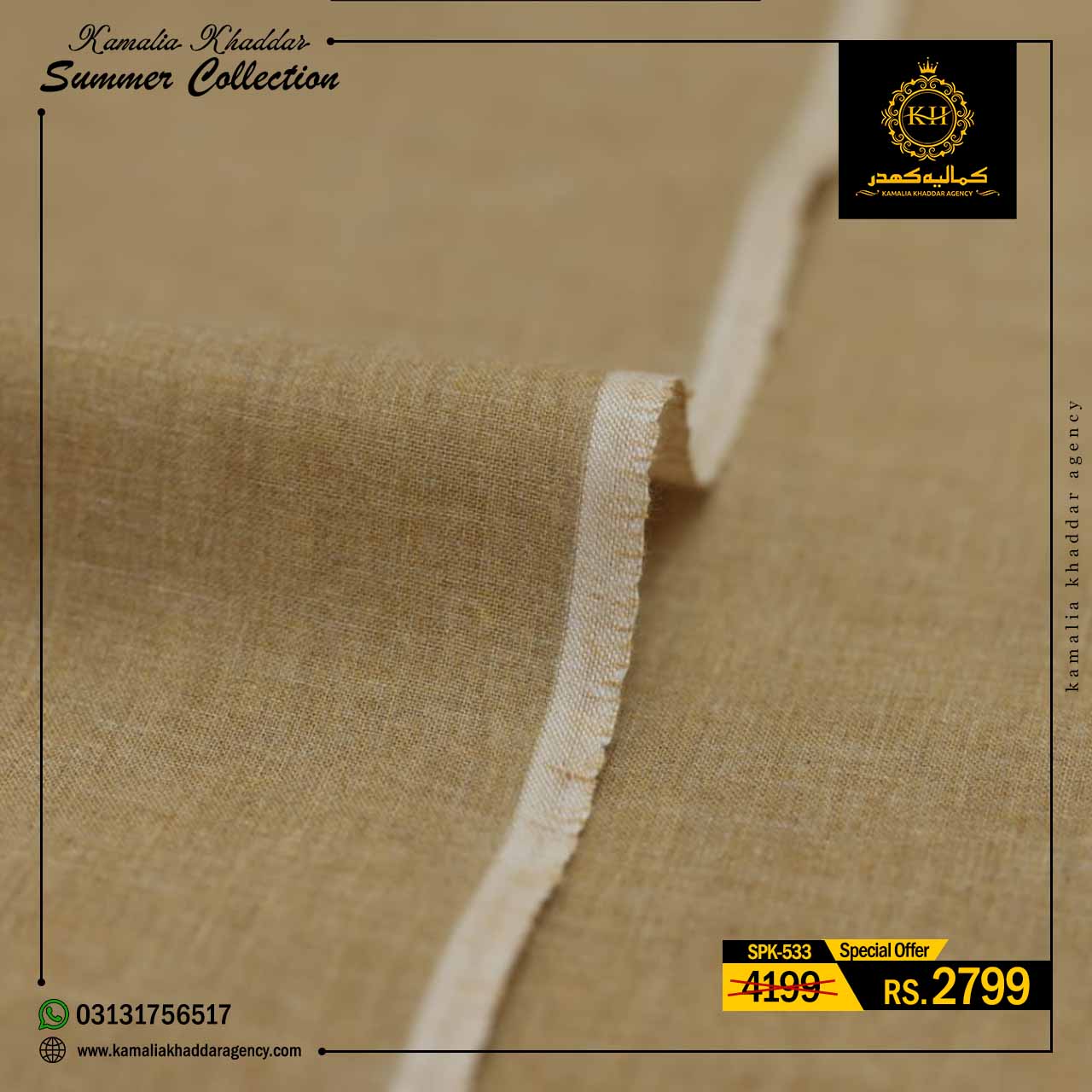 Regular price Rs.4,199.00 Sale price Rs.2,799.00 Save 33%At Kamalia Khaddar Agency, we proudly present our Summer Kamalia Khaddar Collection, crafted to keep you cool, comfortable, and connected to tradition. Originating from Kamalia, Pakistan, this handwoven fabric reflects centuries-old craftsmanship combined with modern summer comfort.